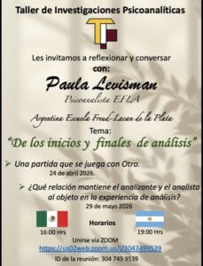 «De los inicios y finales de análisis» por Paula Levisman - 24/04/2026 4:00 pm